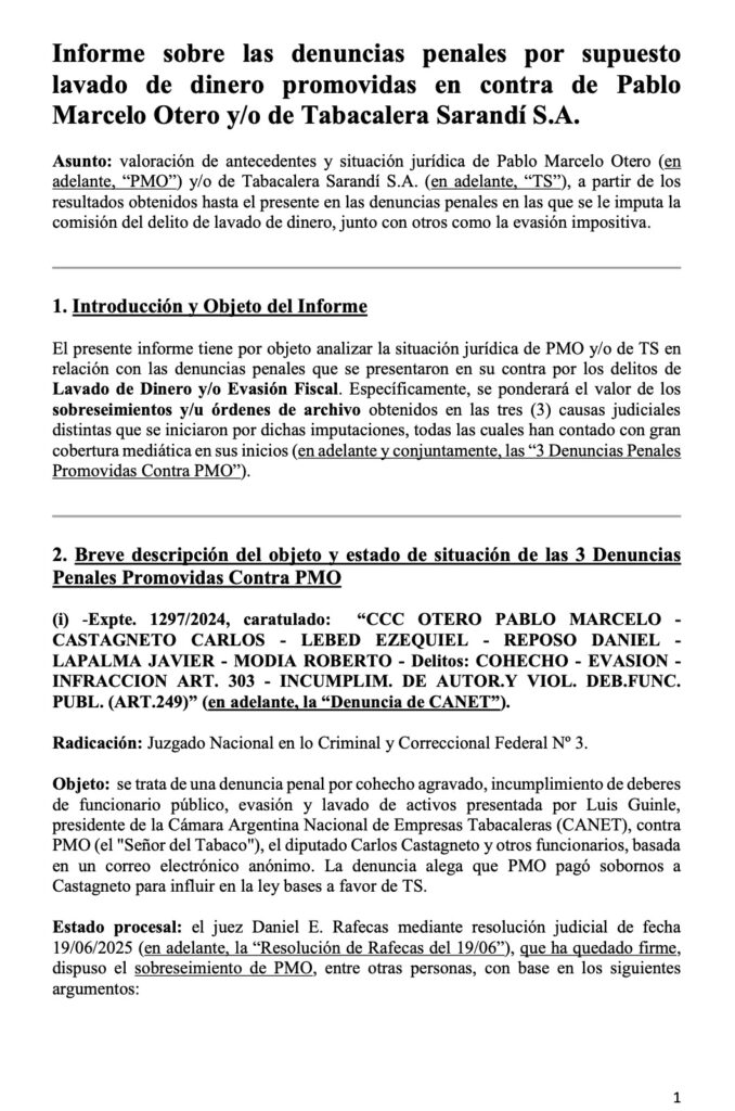 Pablo Otero: informe sobre denuncias por presunto lavado de dinero